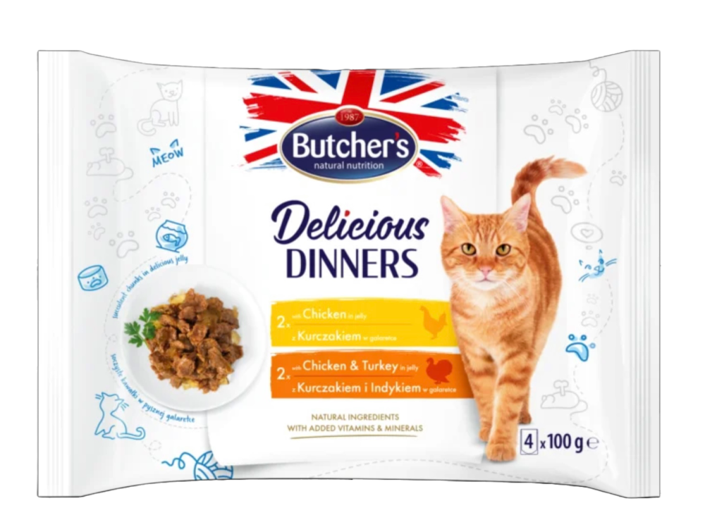 بوتشرز 2 دجاج + 2 دجاج مع الديك الرومي بالجيلي (100g x 4)