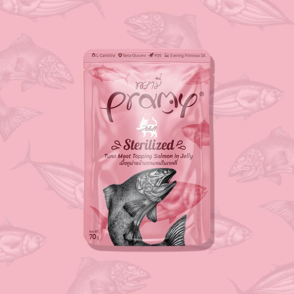 برامي تونة و سالمون بالجيلي للقطط المعقمة 70g